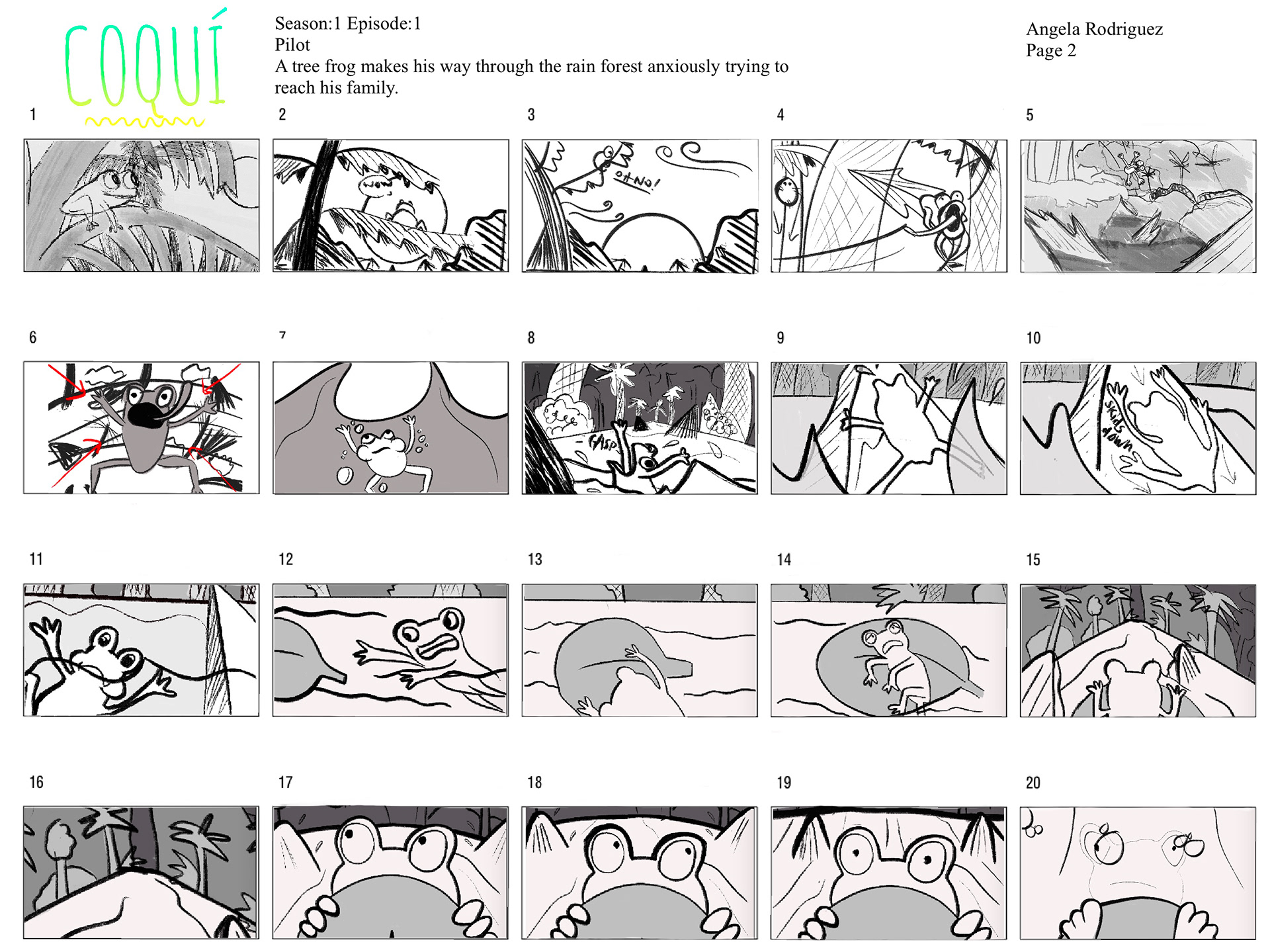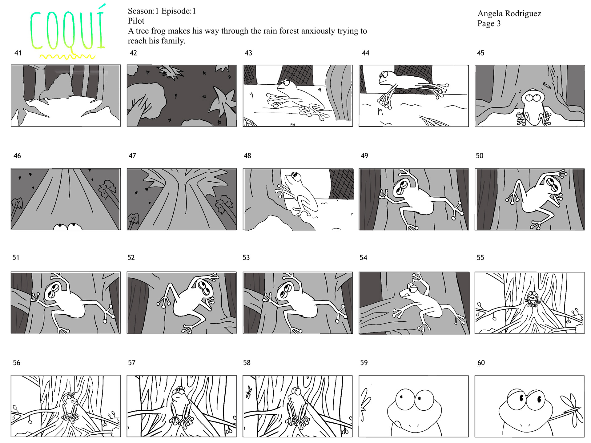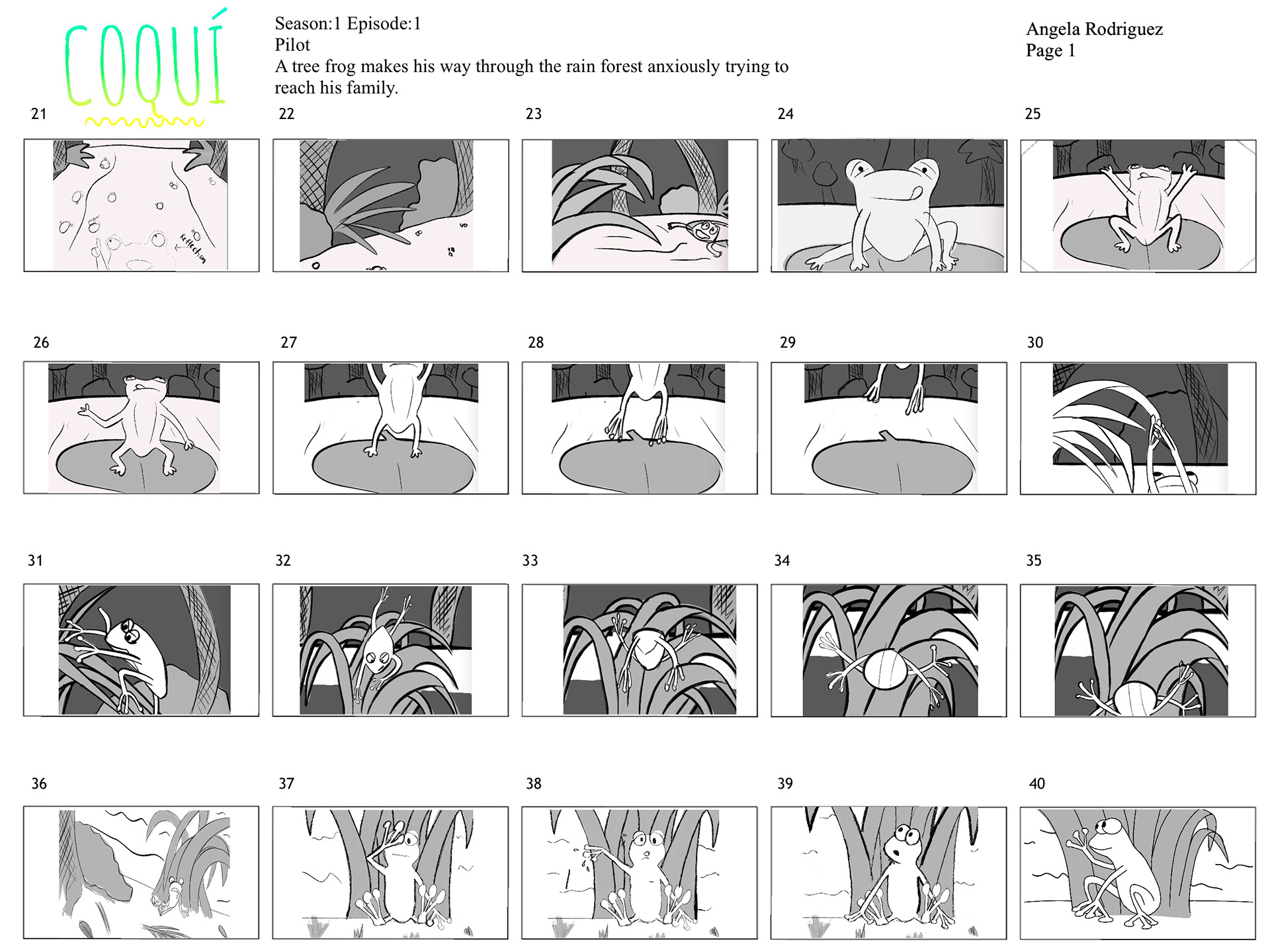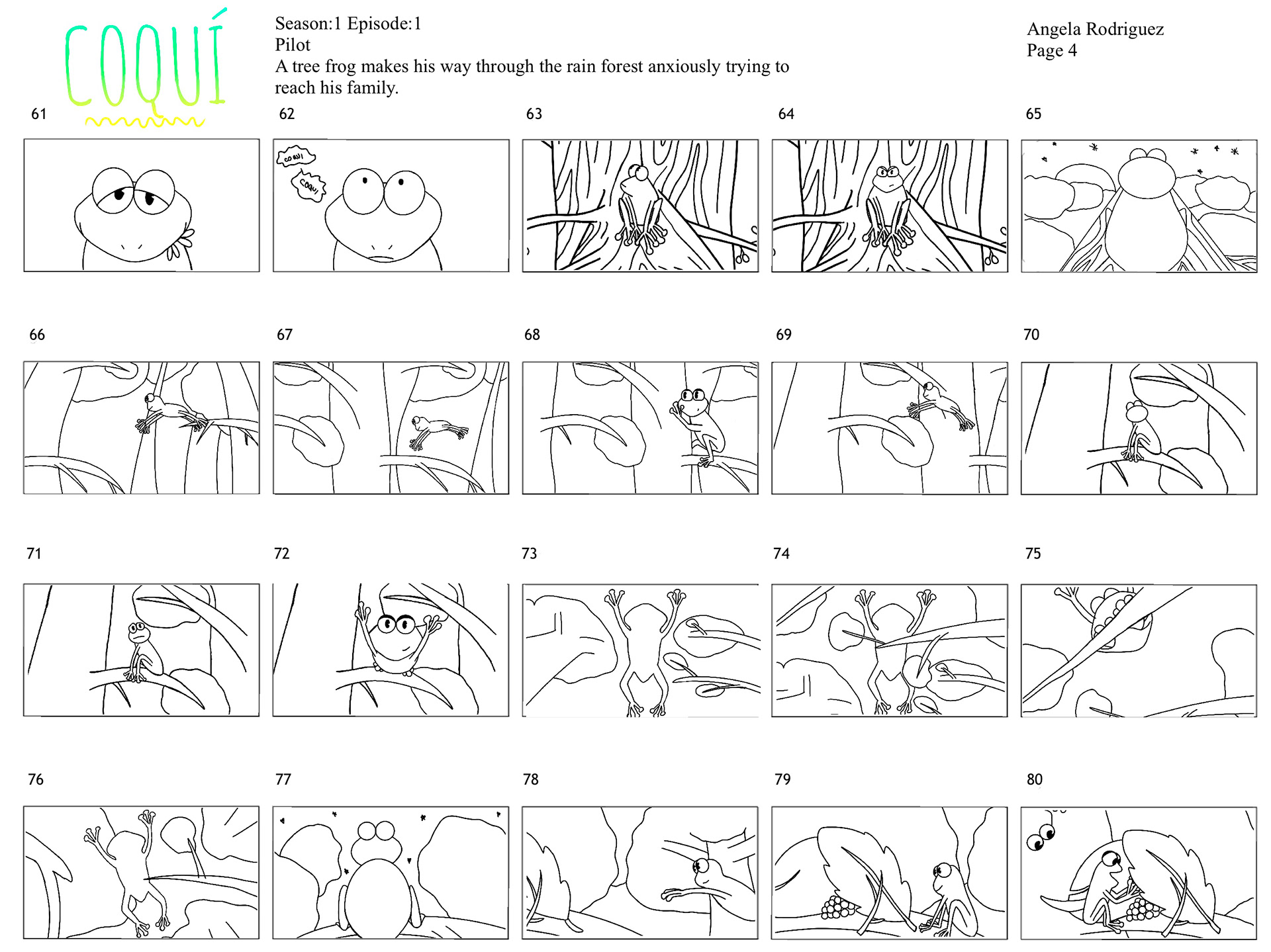 A tree frog makes his way through the rainforest anxiously trying to reach his family.