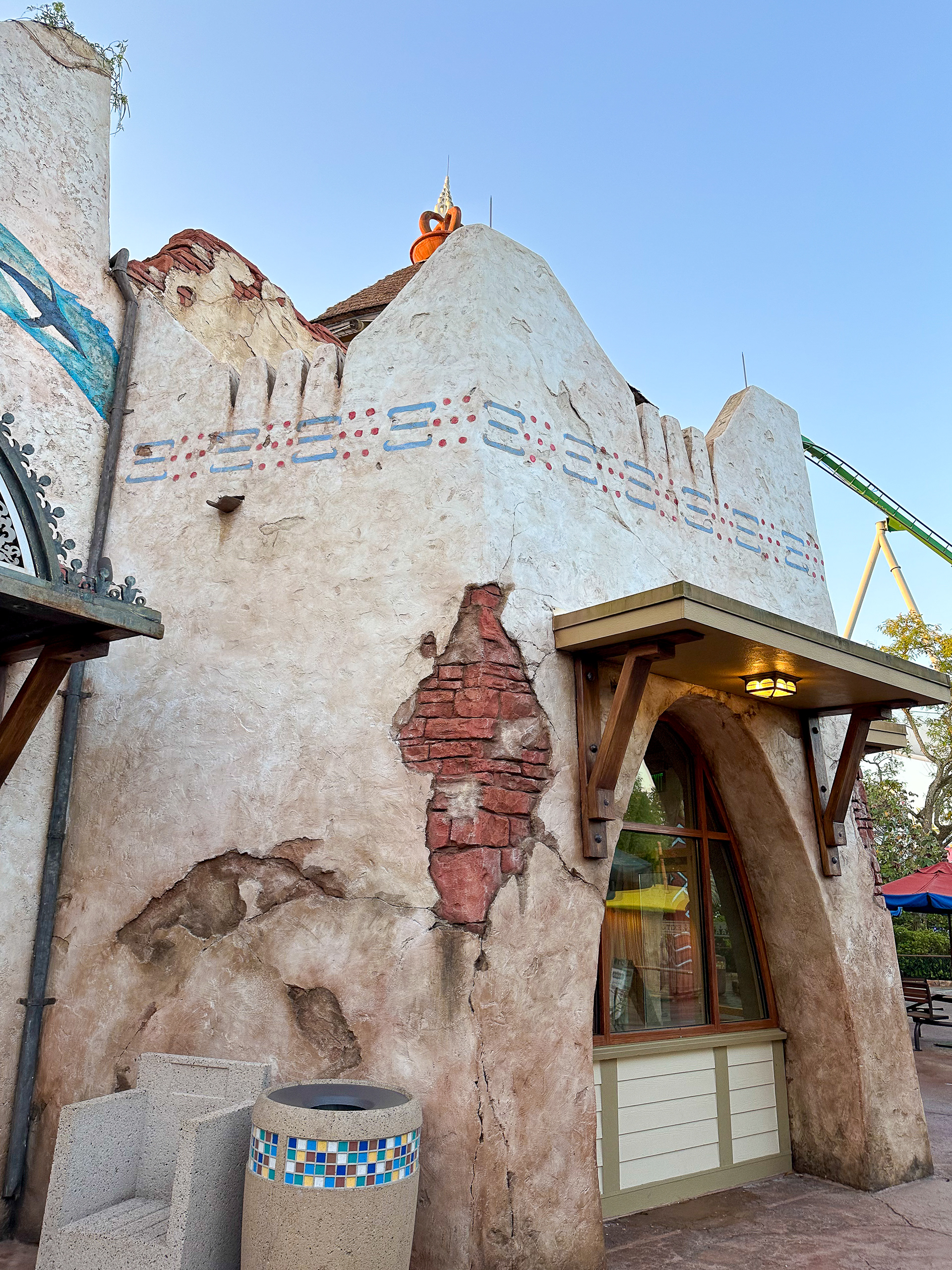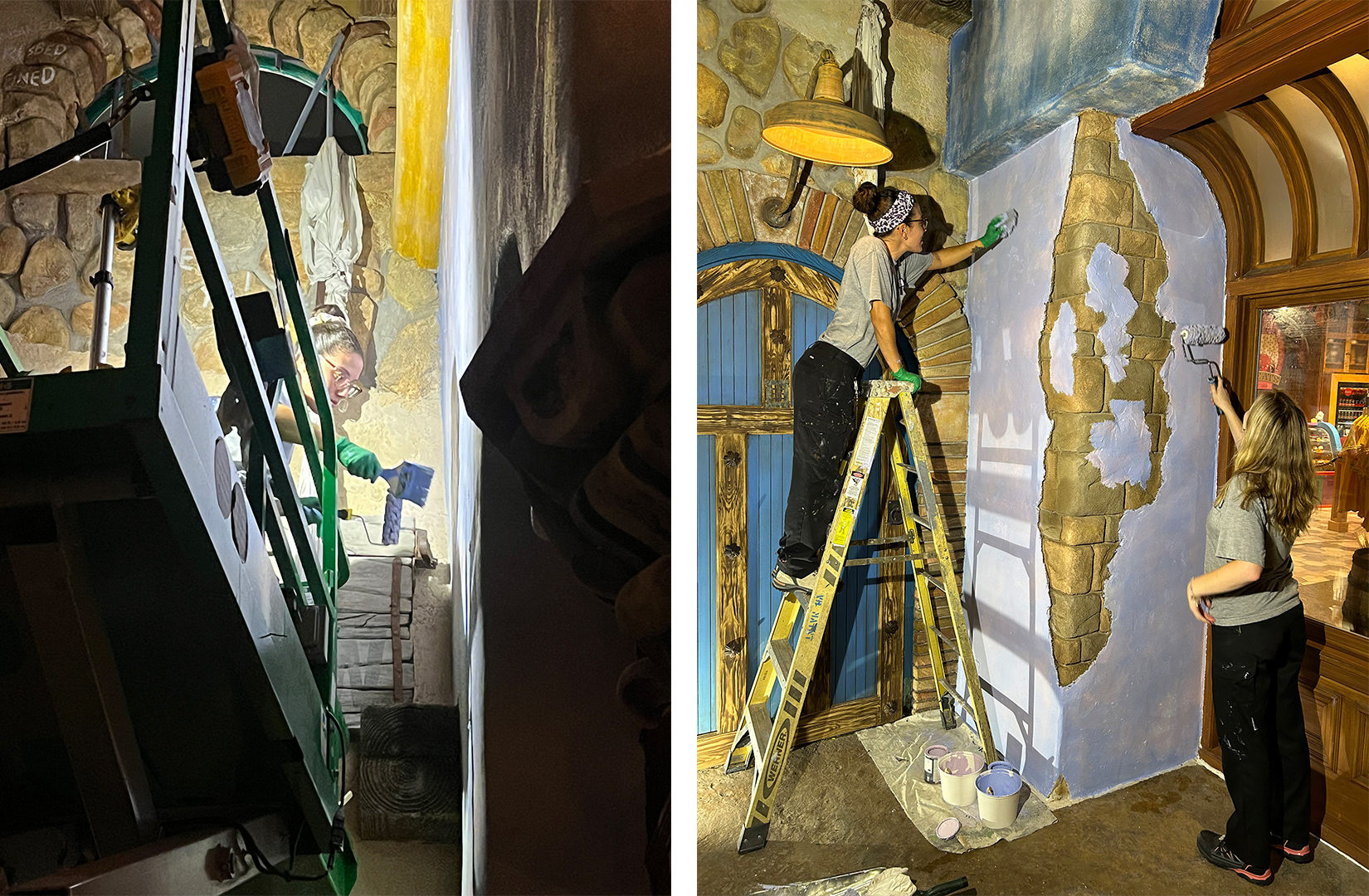 Coordinated with multiple departments to plan the scope of work for the facade repaint. Took part in reapplying the scenic washes and aging to upper levels while utilizing a high reach, applied wood grain, and refreshed the murals and tribal patterns.